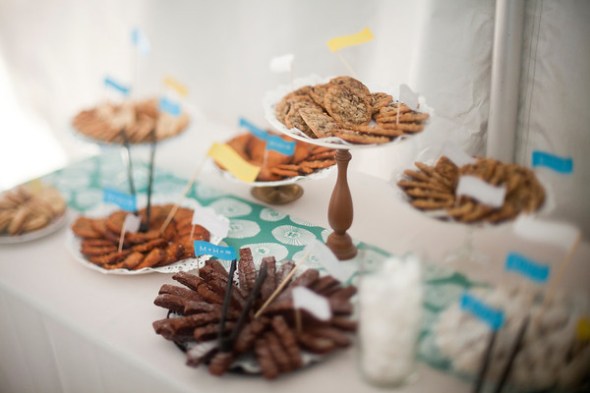 Inspired by our annual cookie party (that’s another post for another day), we asked some friends and family to bake some homemade cookies instead of having a traditional wedding cake. There was a selection of about 14 different types of cookies, each lovingly made (and transported from as far as Baltimore) by our guests. I wish I could have eaten all of them, but there was only so much goodness this girl could handle! We also had six ice cream flavors, all homemade and scooped by their creators, served in adorable vintage punch cups. Double YUM!