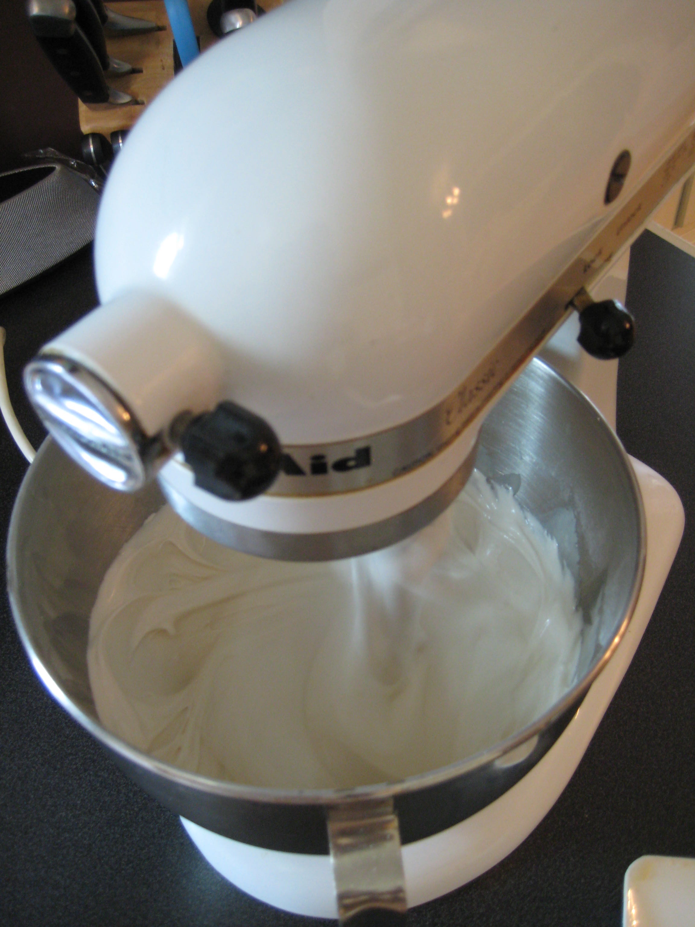 -I had some MAJOR air bubble problems. (See last photo.) Perhaps the problem was that I sort of followed two recipes at the same time, both Sweet Sugarbelle’s and one from Martha. I followed Callye’s recipe for the ingredients, but her batches are so huge I was afraid to cut it in half, not knowing if the ratios would be the same. So I looked for another recipe that made a smaller batch just for the ratios (Martha’s) and then added some flavoring. I was also not as precise as I could have been in terms of icing consistency, nor was I careful about the amount of mixing I did. I guess I’ll just have to try again real soon!