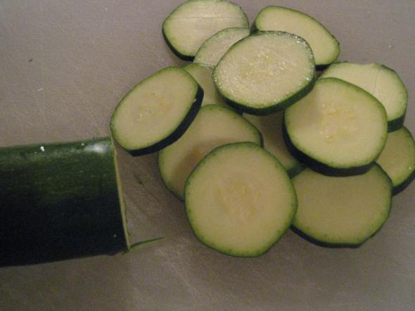 Next – slice your zucchini and sprinkle with a bit of salt.