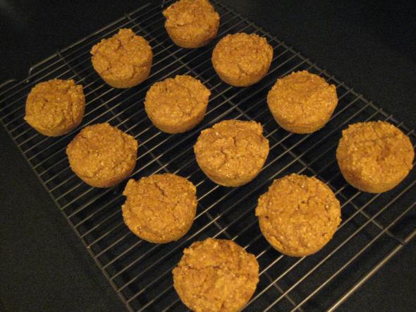 We were invited to dinner with some of Heather’s colleagues on Friday night and it turns out that they were also serving chili. A few of the guests were vegan, so I offered to bring some vegan cornbread. Inspired by the season, I went in search of a recipe that included some pumpkin. Here’s what I found, courtesy of Jaclyn Hope.